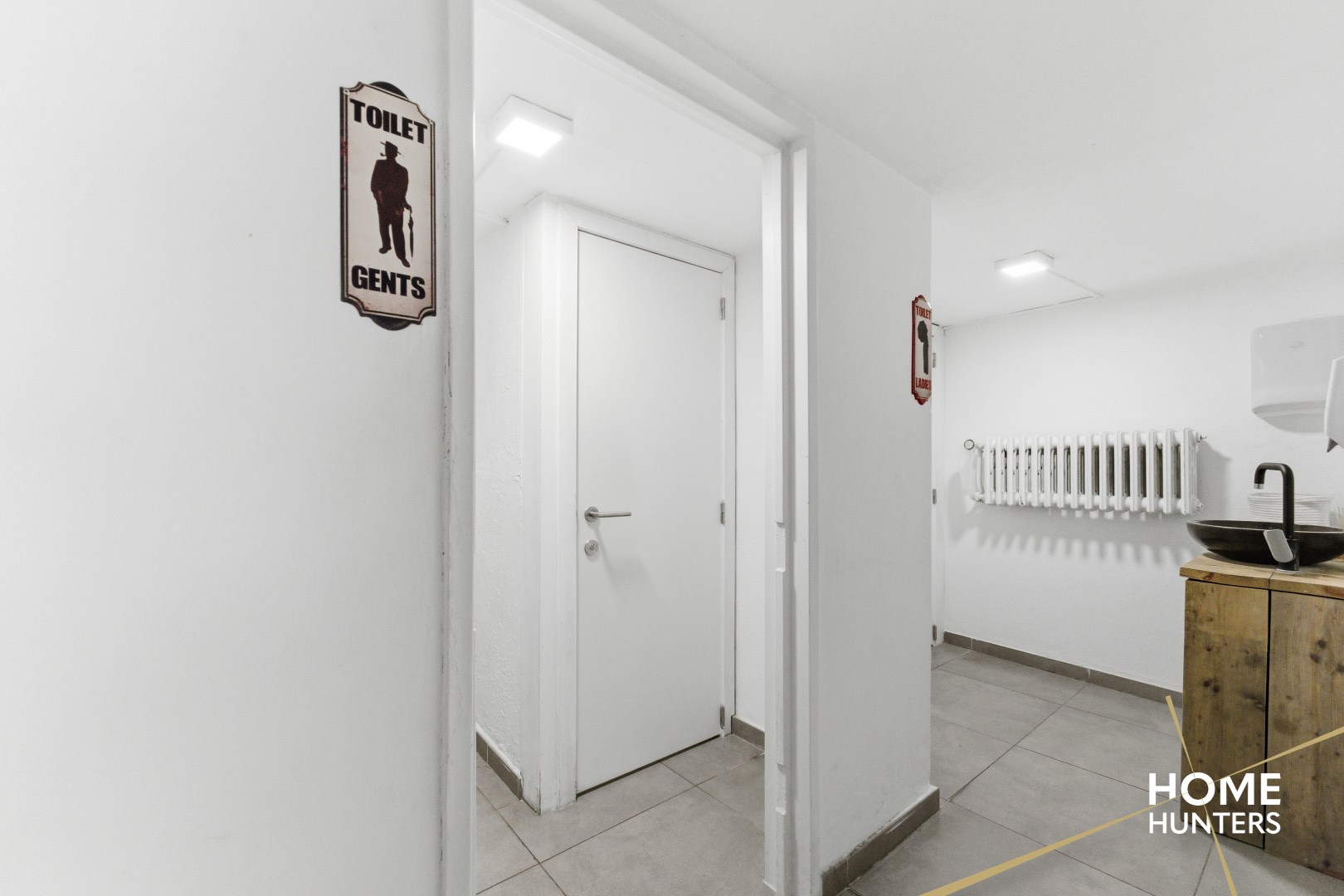 De kelder beschikt over een sanitaire blok met toiletten voor de mannen en de vrouwen. Er is ook een handig doorgeefluik om vaten en drankwaren door te geven naar de ruime kelder (40 m²).