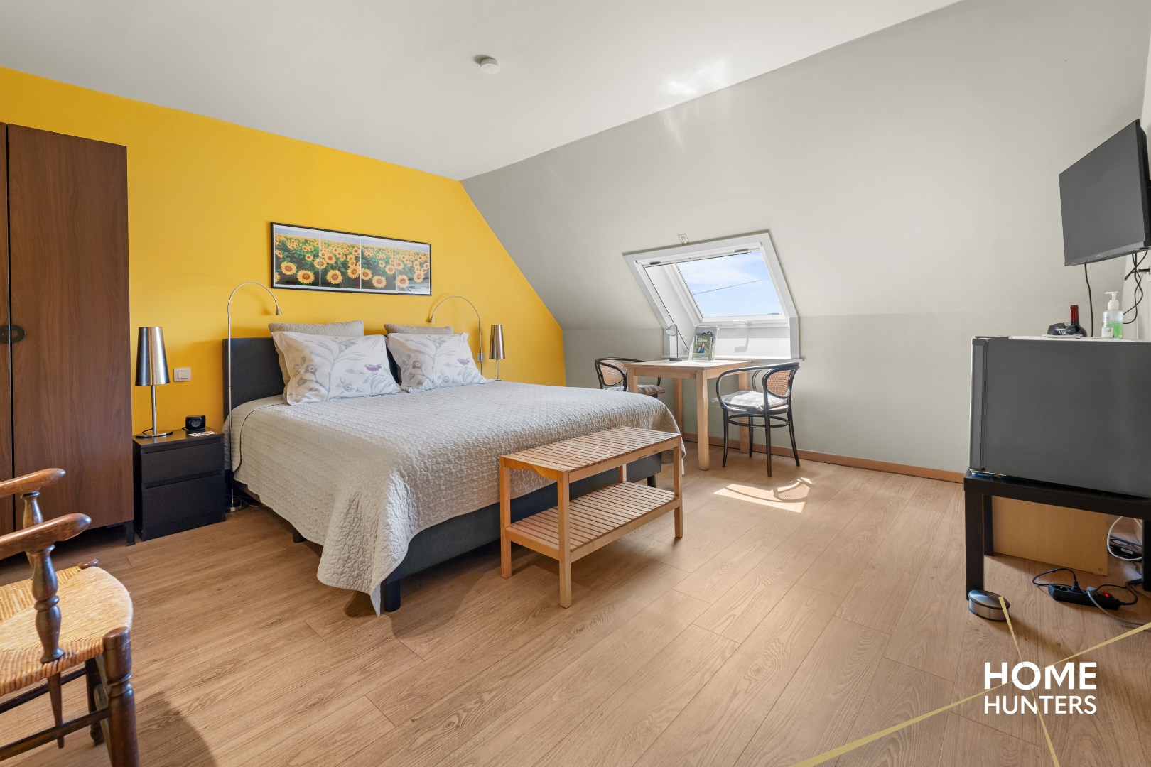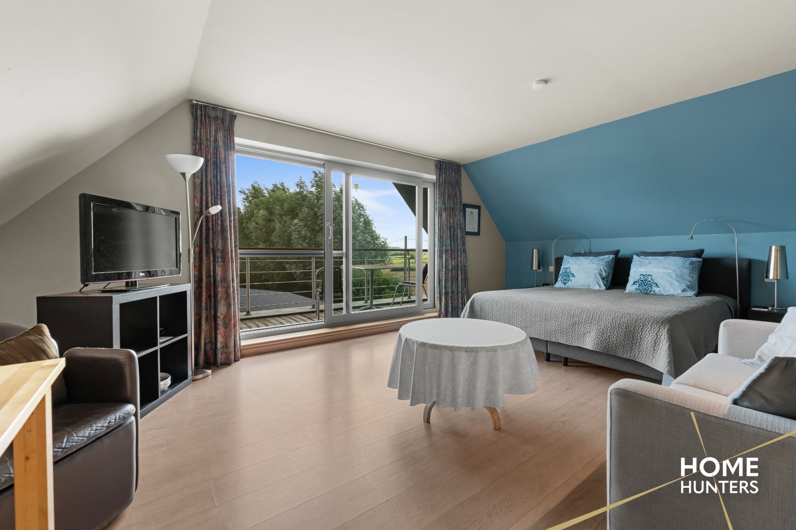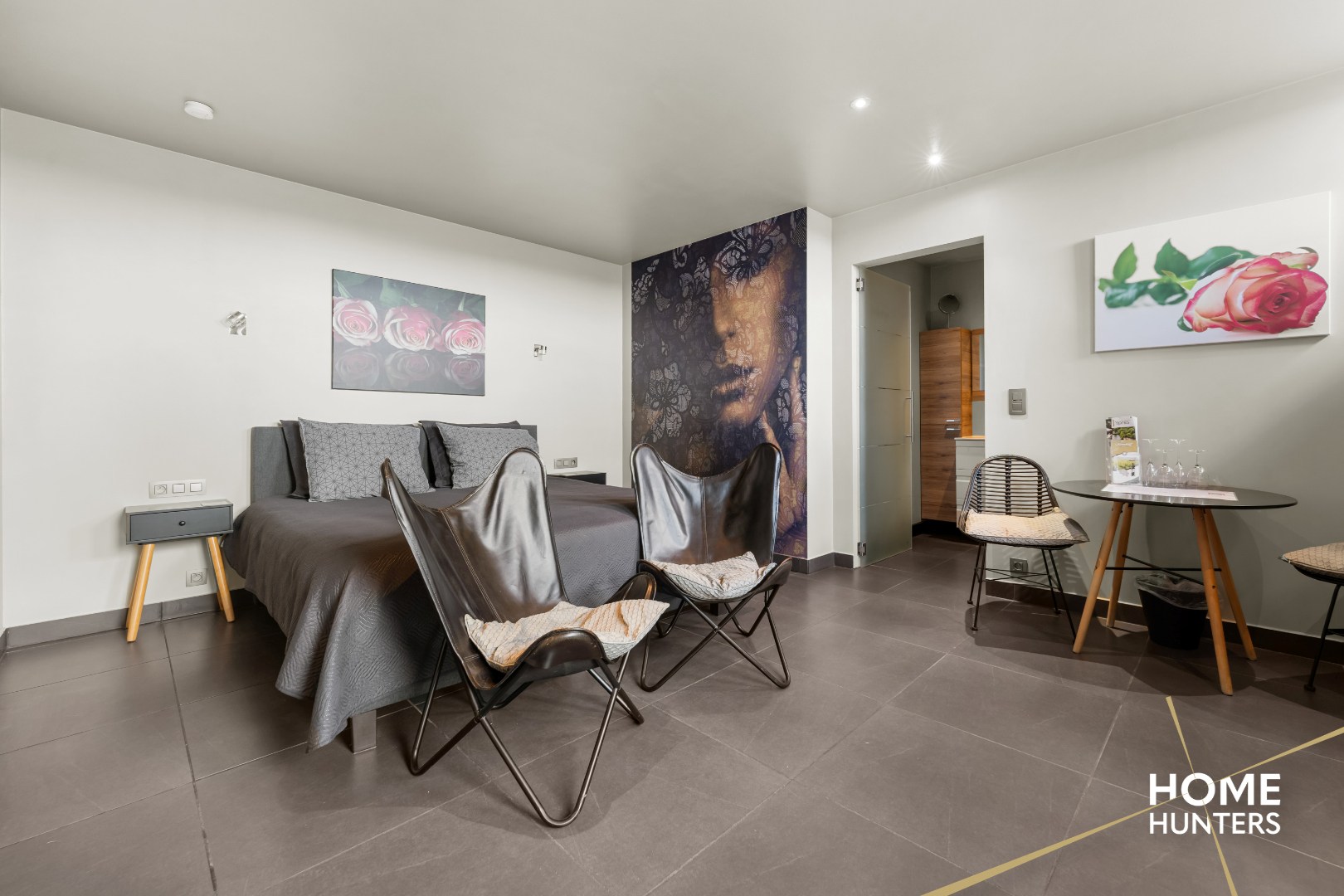 De hoofdwoning charmeert met hoge plafonds, overvloedige glaspartijen en een lichtrijke leefruimte met zicht op de uitgestrekte tuin. De leefruimte sluit naadloos aan op een volledig uitgeruste keuken met keukeneiland. Een mezzanine met zicht op de tuin fungeert als bureau of hobbyruimte. De woning telt zes slaapkamers, waarvan vijf momenteel worden uitgebaat als volwaardige B&B-kamers met elk een eigen badkamer en toiletvoorziening. De master bedroom beschikt over een aparte dressing en een privé badkamer.