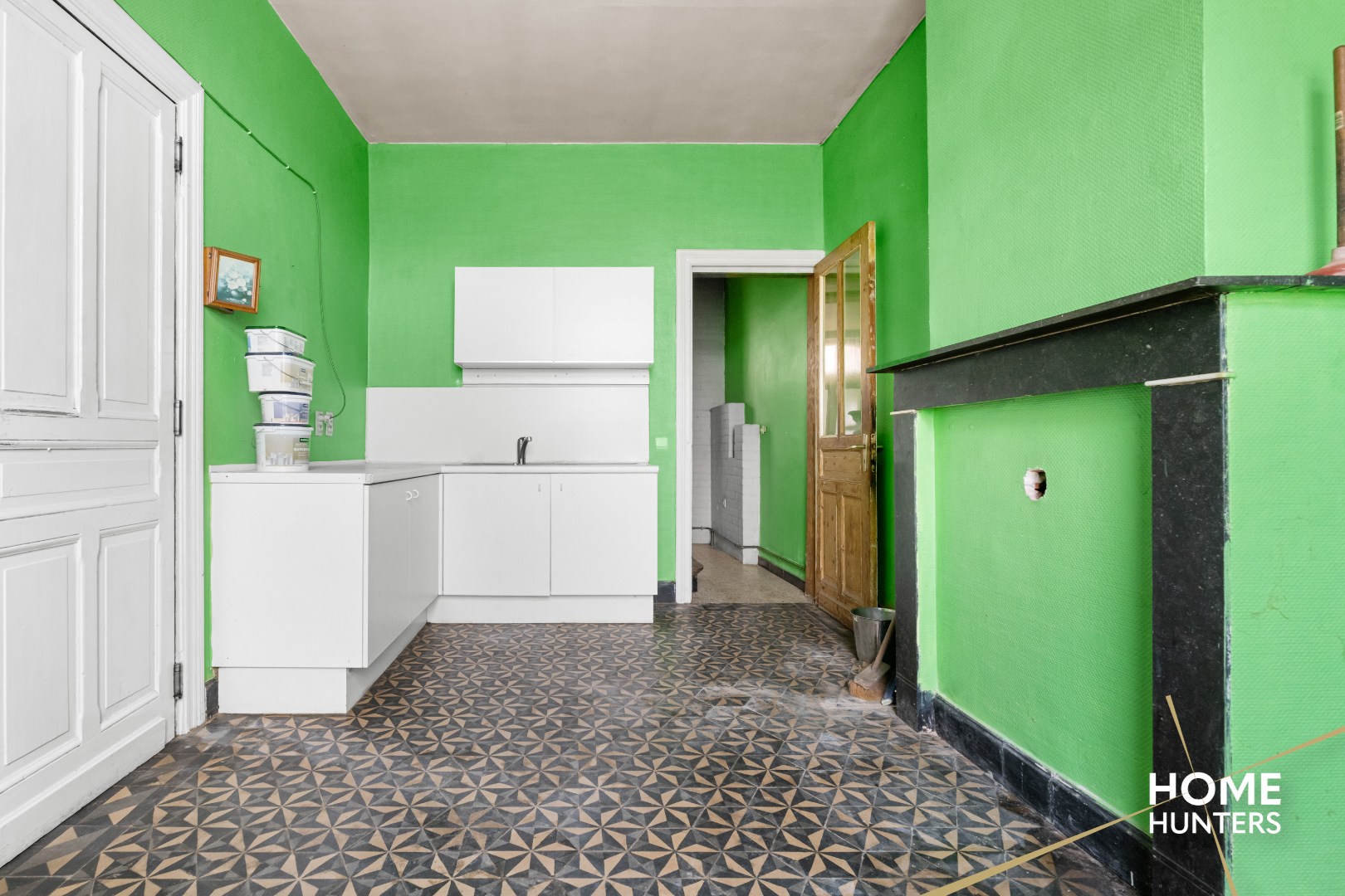 Gelijkvloers: grote leefruimte met optie voor open keuken (+ zicht op de tuin), bijkeuken/berging, traphal, badkamer en extra keuken.